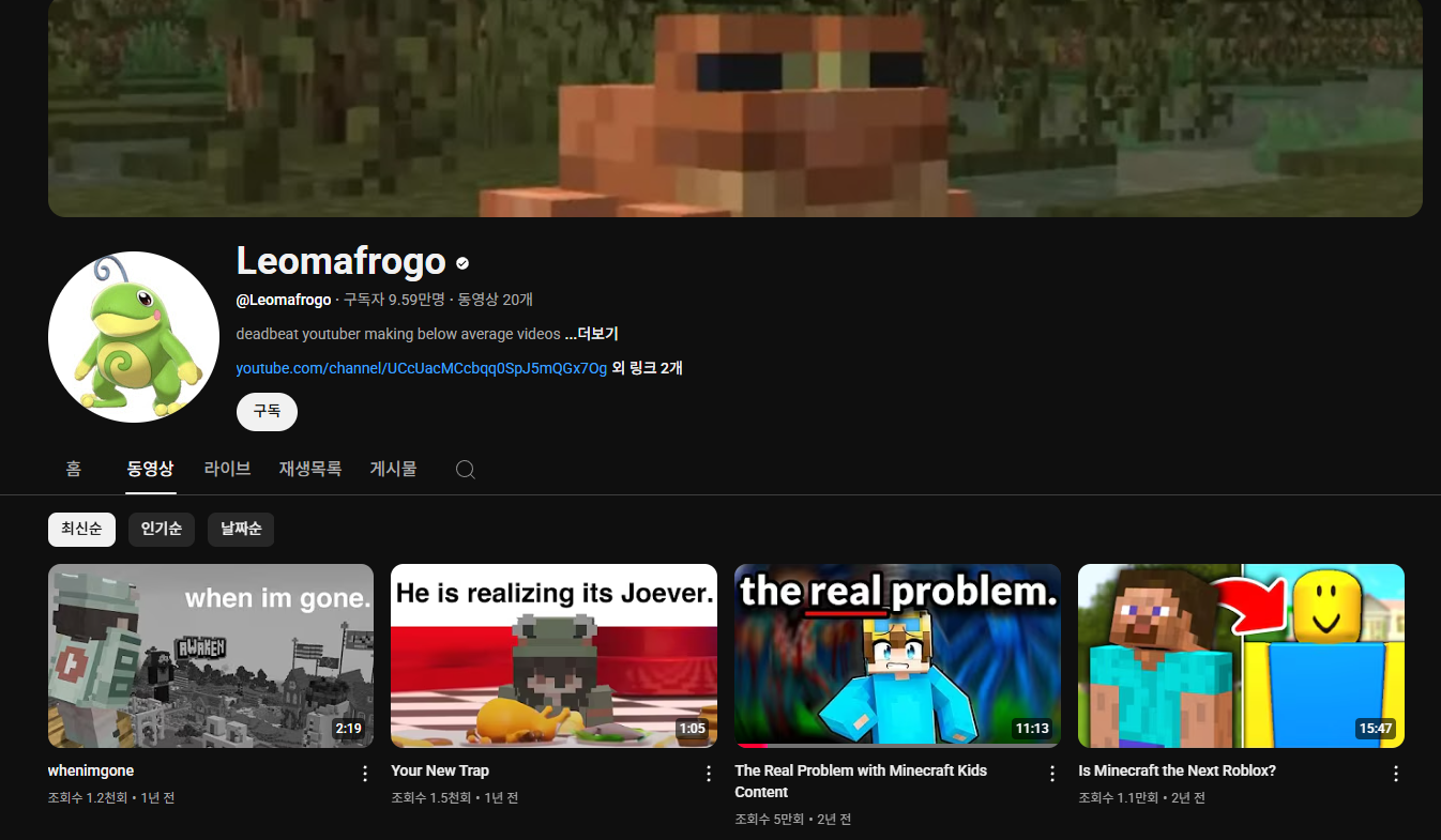 a Minecraft YouTube channel with 100K subscribers and 6.2M views.